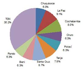 del eje (La Paz, Cochabamba y Santa Cruz) reciben el 25,8% del