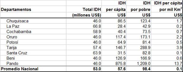 Cochabamba), representando un 12,5% del IDH total recaudado.