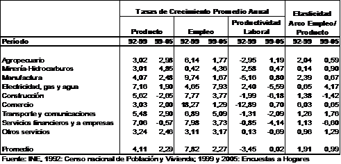 alta elasticidad empleo-producto. Sin embargo, es importante