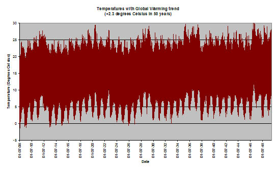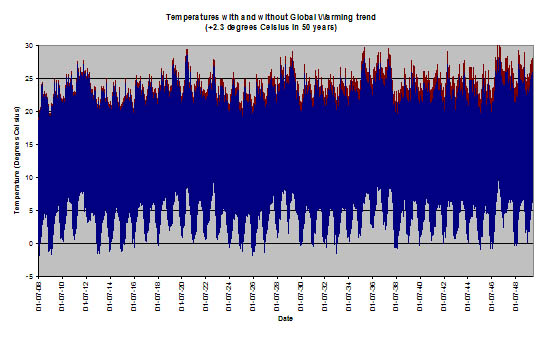 assuming a very strong global warming trend of 4.6 degrees