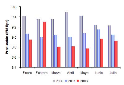 2006-2008, expresada en millones de barriles por día (MM Bpd).