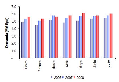 mensual de la demanda por hidrocarburos líquidos. Claramente