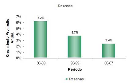 crecimiento promedio anual de las reservas de petróleo,